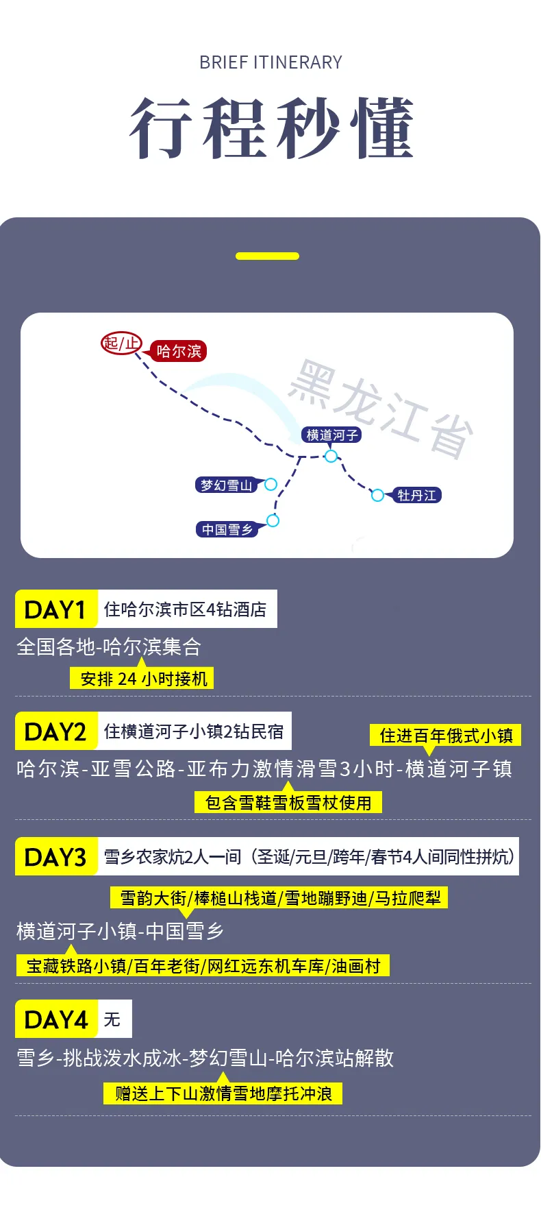 3、哈尔滨-亚雪公路高速路段如遇天气或政府原因封路改走五常或乘坐高铁抵达亚布力,高铁票费用自理。