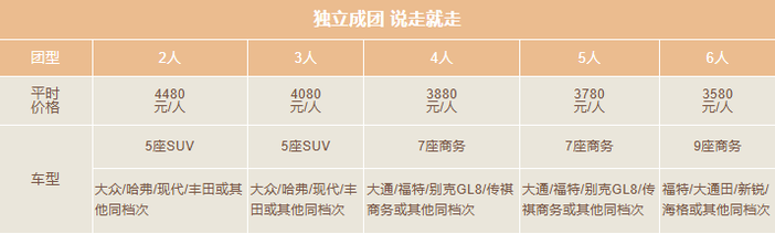 4、向导/领队:8人以下司机兼向导(熟悉路线并给队员游玩建议,司机没有专业讲解能力,且不进景区,请理解);8人及以上司机+领队