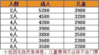 以上团期:3580元/成人,2280元/儿童